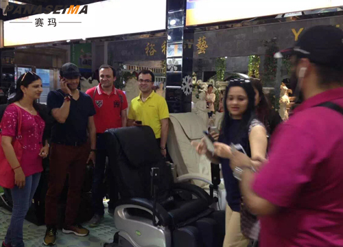 “中國十大按摩椅品牌”的賽瑪按摩椅多年來在品質(zhì)口碑的盛譽(yù)下占據(jù)了印度的大半壁市場,成為印度上層社會(huì)的首選按摩器材。近日,印度天王級(jí)歌星Snou Nigam攜太太出現(xiàn)在賽瑪?shù)钠炫灥?,引起了現(xiàn)場人員的擁堵。許多人圍觀后才知,原來天王夫婦是慕名來訂購賽瑪?shù)?a href="http://www.cdfyj.com/amyxl.html" target="_blank" title="佛山市賽瑪電子科技有限公司" style="font-family: 黑體, SimHei; text-decoration: underline;">豪華按摩椅的!